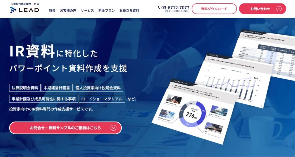 株式会社ストリームラインが運営する「LEAD」は、IR資料作成に特化した代行サービスです。