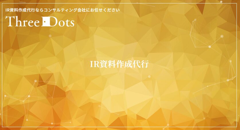 スリードット株式会社は、経営コンサルティング会社の知見を活かし、「説得できる」資料作成をコンセプトに、IR資料作成代行サービスを提供しています。