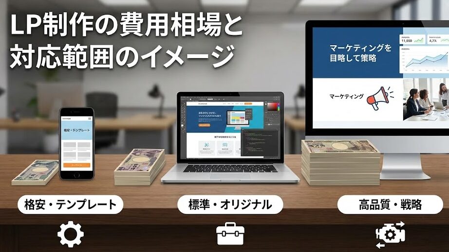 - LP制作は数万円〜依頼可能だが、テンプレート利用や素材支給が前提となることが多い。