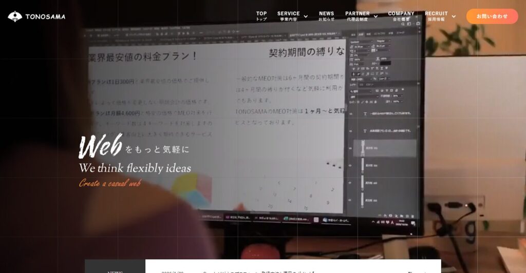 「株式会社TONOSAMA」は、完全オリジナルデザインで格安LP制作を実現する制作会社です。手軽にLPを制作できるプランでは、経験豊富なデザイナーが9万円でオリジナルデザインを提案してくれます。