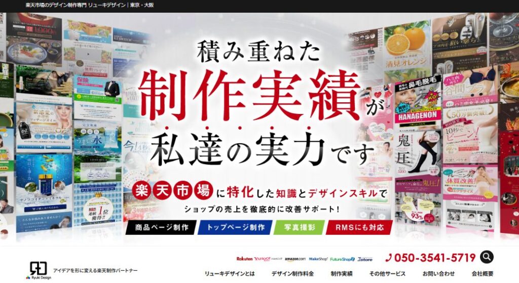 「株式会社Ryuki Design(リューキデザイン)」は、楽天市場やAmazon、Yahoo!ショッピングといったEC・モールの売れるノウハウに特化した制作会社です 。制作実績は4,000社、12,000ページ以上と業界トップクラスの規模を誇り、物販系LPにおけるデータに基づいた提案が可能です。